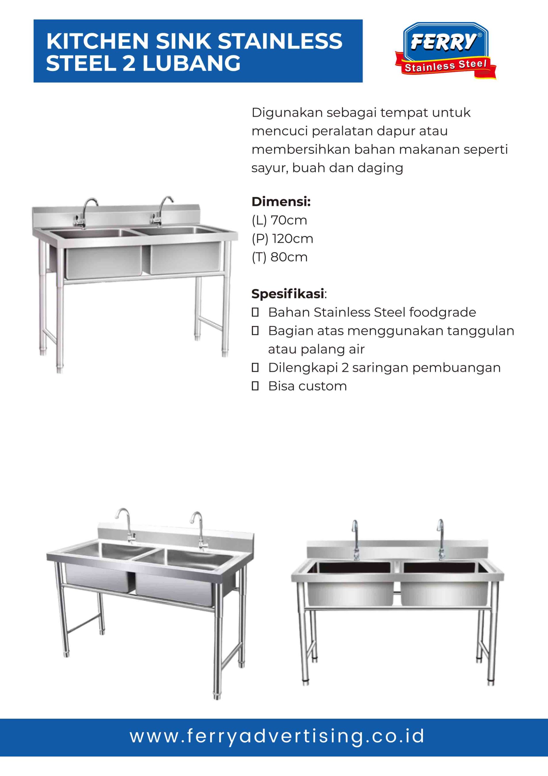 Kitchen Sink 2 Lubang dan 1 Lubang Stainless