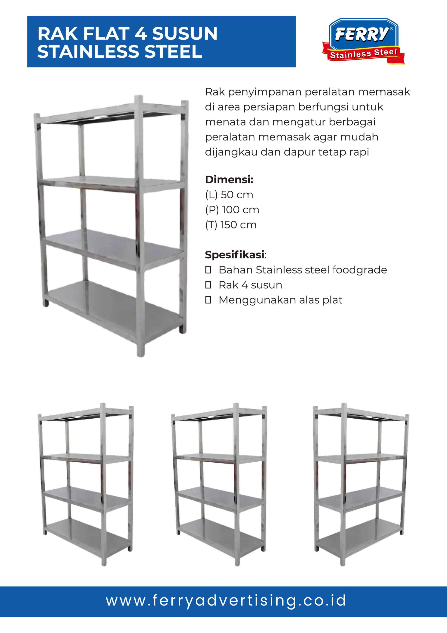 Cocok digunakan di dapur sekolah dan fasilitas gizi SPPG.Rak Flat 4 Susun Stainless